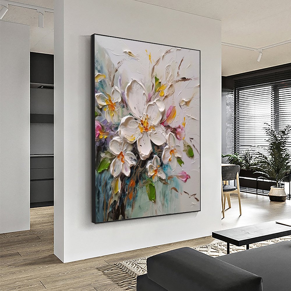 Hand Painted Oil Painting Abstract Original Flower Oil Painting On Canvas Large Wall Art Original White Floral Painting Floral Custom Painting Living